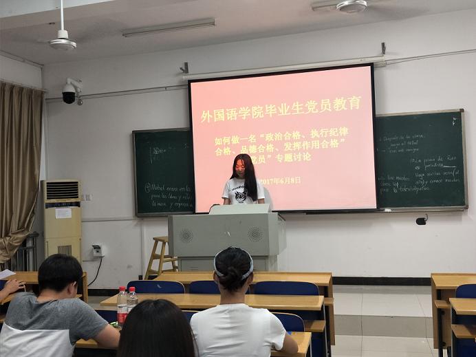 6月8日,yl23455永利集团全体毕业生党员于外语网络楼604教室开展了主题为“如何做一名‘政治合格、执行纪律合格、品德合格、发挥作用合格’党…