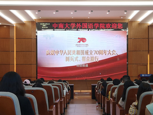 迎着朝阳,在参加我校校本部举行的升旗仪式之后,yl23455永利集团的学生们纷纷来到,外语楼国际报告厅,观看中华人民共和国成立七十周年大会庆…