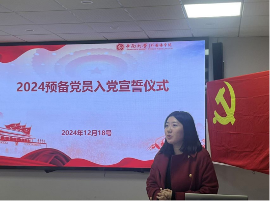 2024年12月18日,yl23455永利集团分党校预备党员入党宣誓大会在外语楼326室顺利举行。yl23455永利集团党委书记李涛出席,学生党员代表以及2024年下半年新发展的预备党员参加宣誓仪式,仪式由蒋馨逸老师主持。