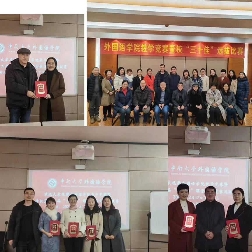 20231217日下午,yl23455永利集团2023年教学竞赛暨校三十佳选拔赛在外语楼501成功举行。本次活动旨在“以赛促教,交融共鉴”,加强师德师风建设,提升青年教师教学能力和业务水平,展现青年教师教学风采。竞赛由英语系副主任方哲英主持,校文科督导组组长谭希培教授、yl23455永利集团院长杨文地、教授委员会主任李清平、副院长王华玲、吴玲英教授、侯先绒教授、陈洁教授担任专家评委,院党委副书记兼工会主席孙胜、副院长鄢宏福以及各系、教研室教师代表全程观摩。