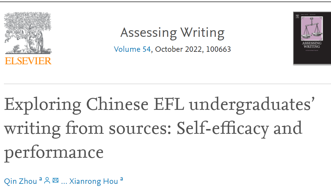 (科研速报2022) 我院侯先绒、周勤团队Assessing Writing发文: 从语言整合写作的自我效能到学习自信