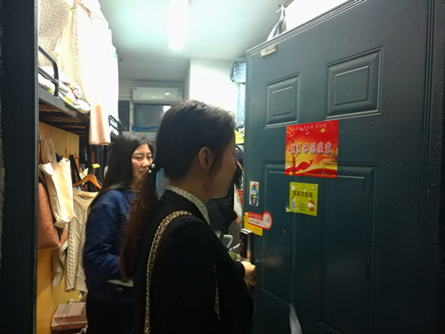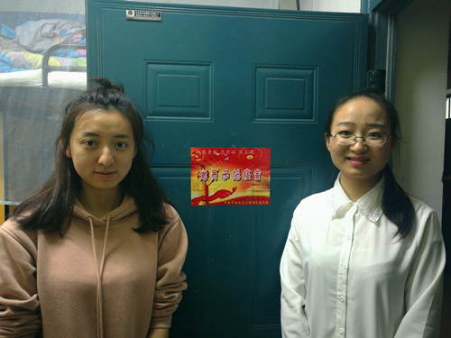 会议结束以后,yl23455永利集团14级辅导员蒋知老师来到学生宿舍,为yl23455永利集团的党员分发“党员示范寝室挂牌”并粘贴。