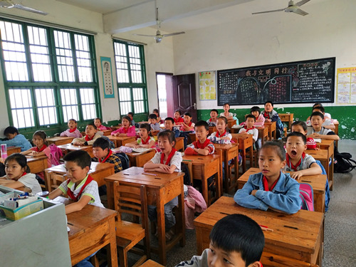 早上七点,志愿者们从升华公寓门口准时出发,经过两个多小时的车程,抵达浏阳大围山白沙金长城希望小学,与校方协商好之后,开始教学。一年级的小朋友求知欲强,不懂就问,以最大的热情投入到小老师们设计的成语接龙猜字谜等活动中;二年级,主题是感恩教育,大家一起做“感恩的心”手语操并大合唱,志愿者们也以游戏的方式告诉孩子们同学之间相处的小道理;三年级,以英语教学为主,有简单的对话交流,英文儿歌Twinkle star,志愿者们也贴心设计小环节帮助大家理解;四年级的小朋友收获了小松鼠和阿昆的故事,并开动脑筋故事将继续讲下去,在整个过程中,小朋友的想象力得以激发,既收获了知识又得到了欢乐;五年级的孩子们跟着志愿者的节奏,一起学习“宠爱”的舞蹈;六年级的美术课上,大家学到了构图知识与上色技巧,小组绘画比赛中同学们一起感受到合作与创造乐趣。