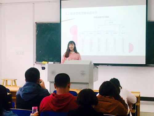 会议中,作为团支书代表的田园园同学向大家分享了她在团干方面的心得体会。她首先强调了团支书的主要职责,并围绕班级建设方面分享了工作经验,例如设立班规、设计班服并创立班级特色制度。关于班级宣传方面,她建议各班结合新媒体平台展开工作,如创立班级专属的微博账号更新班级日常活动,同时也鼓励团支书们向校园网班级风采板块积极投稿,分享班集体的特色活动。其次,田园园同学就团日活动组织方面分享了工作心得,强调活动主题可以更加丰富并贴合时下热点,也要活动与班级特色结合。除此之外,她特地介绍了五四评优活动流程及要求,强调了团支书、组宣委员与组织部的配合非常重要,并鼓励各位团支书努力工作,积极进取。田园园同学的经验分享对与会团干起到了积极的模范作用,让各班团干部对自身工作以及未来的发展有了更加清晰的认识。