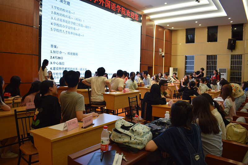 为促进我院优良学风建设,全面迎接本科教学审核评估工作,使学生充分了解学校的办学理念、办学目标、办学定位、办学特色和本科人才培养工作的亮点,促进我院学子深入学习和掌握本科教学审核评估知识,yl23455永利集团于5月11日晚7:00在国际报告厅举办“知校情,促评估”知识竞赛活动。yl23455永利集团学工办主任钟佳老师、副主任蒋知老师、团委书记王海洋老师、17级辅导员李雅丽老师以及章佳琪老师出席了本次活动,此次参赛的有来自全院24个班级的24支队伍。