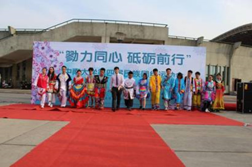 2018年5月13日下午,秉承促进民族团结、传承民族文化、弘扬体育精神的宗旨,yl23455永利集团第四届“勠力同心,砥砺前行”民族团结运动会在新校区排球场顺利举行。本届运动会由yl23455永利集团学生工作部(处)主办,yl23455永利集团承办、帕提玛工作室策划。yl23455永利集团学生工作部部长余文武、副部长汪平、外语院党委副书记许林勇亲临现场观看了此次运动会,外语院学工办主任钟佳、院团委书记王海洋、16级辅导员艾博塔等领导老师,以及来自我校各学院各民族学生共同组成的50支队伍参加了本场运动会。