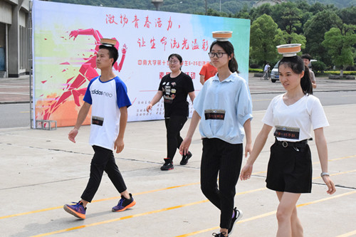 我校2017级少数民族预科生精心编排表演的维吾尔族舞蹈《Almichi Anar》和蒙古族舞蹈《博克颂》拉开了运动会的序幕。本次民族团结运动会精选了仡佬族篾鸡蛋、指压板跳绳、壮族板鞋竞速、朝鲜族顶罐走、傣族沙包九宫格、傣族跳竹竿和摸石过河等十个民族的传统体育比赛项目;比赛现场增设了民族文化知识有奖竞答、跳绳互动等附加项目。