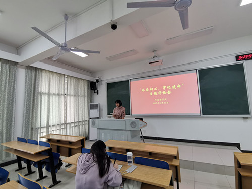 在近一个多小时的讨论发言结束后,班导师李雅丽对各位发展对象的总结陈词进行了肯定的点评,她谈到各位发展对象能够结合实例讨论“不忘初心,牢记使命”,体现了他们对身边事有着敏锐的观察力和深刻的理解力。同时她也希望大家能够时刻牢记自己的身份,向一名优秀的共产党员看齐,做好先锋垂范带头作用,时刻牢记初心,时刻坚守使命。