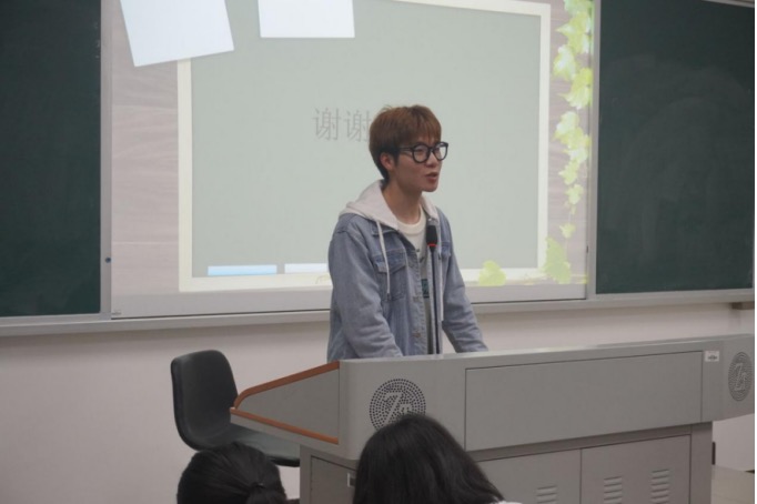 王能文首先就英语专业学习开展分享。他提出,融入大学生活,一要积极自信,二要努力自律。人际交往方面,他就不同交往对象提出了不同的交际方式,鼓励萌新融入大学交际圈。最后,针对大学生的人生规划,他就深造和工作两个方向提出了有用诚恳的建议。