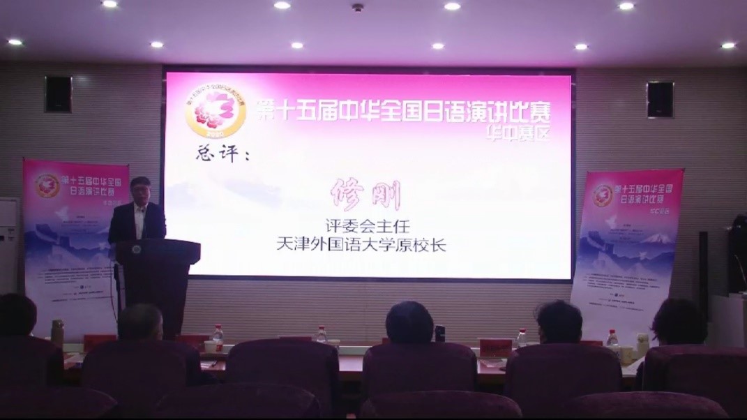 教育部外指委日语分委会主任委员修刚教授作大赛总评发言