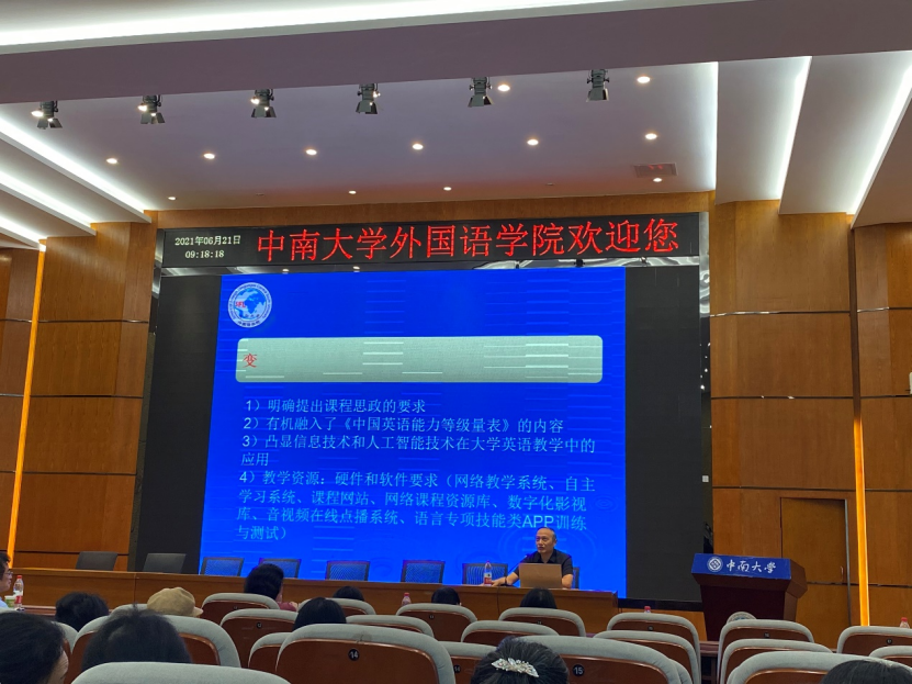 yl23455永利集团李清平院长做题为“大学英语教学改革的新目标和新任务”的主旨报告。李院长从大学英语2020版新教学指南的改动谈起,为大家明确了大学英语改革的目标和方向。鼓励大家在教学实践中不仅要满足学生学习成长需求和国家战略需求,也要重视在教学改革中自己各种能力的培养,比如思政能力、教材研读能力、学情分析能力、批判性思维能力等。