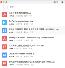 周勤老师在动态性评估理论指导下,详细安排了小组协作活动过程的操作细节,和小组写作学习分享内容项目指南。包括小组写作需要多模态的互动陈述、对参考指南形成小组和共同决策,组内讨论要提供网络聊天记录,在教师反馈基础上,进行第二次讨论等内容。