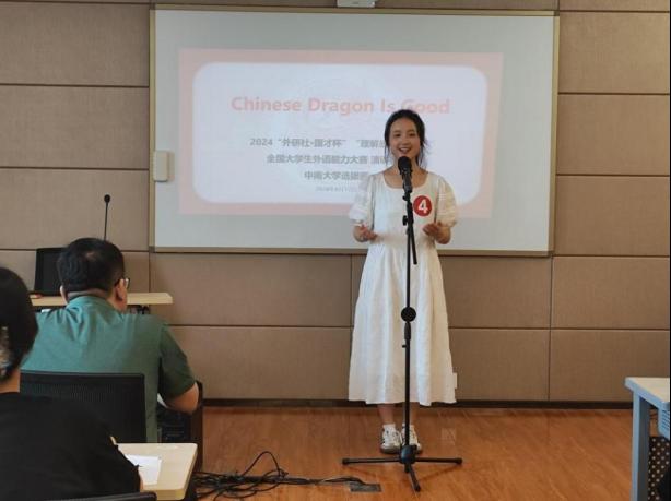 本场比赛由3分钟命题演讲、1分钟即兴问答、2分钟即兴演讲三个环节组成,旨在全面考察选手们的语言表达能力、逻辑思辨能力及舞台表现能力。命题演讲题目为“Chinese Dragon Is Good”,选手们结合自身理解,立足国际视角,从“小而美”的角度,以文载道,以心雕“龙”,生动诠释了以“中国龙”为代表的中华民族精神和文化传承,展示着中国文化的独特魅力和深厚底蕴。问答和即兴演讲环节中,选手们思维敏捷、应变自如、妙语连珠,充分展现了中南学子的风采与智慧,为现场观众带来了一场视听盛宴,令人耳目一新,意犹未尽。