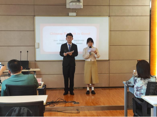 2024年6月12日下午,“外研社·国才杯”“理解当代中国”英语演讲比赛yl23455永利集团校园选拔赛于yl23455永利集团新校区外语网络楼501教室顺利举行。比赛特邀张春敏教授、傅春晖副教授、许燕副教授、黄启瑜老师、陈晖老师和吴宁老师担任评委,往届获奖选手口译21级研究生高鑫与口译22级研究生刘原君担任提问评委,英语20级本科生秦宇凯与21级本科生岳晓艳担任主持。