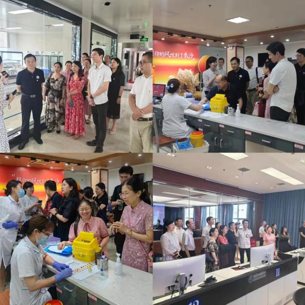 长沙血液中心党委书记袁科,党委委员、纪委书记肖文辉,党委委员、副主任胡敏,党委委员及相关支部书记、业务科室主任热情接待了我院师生。