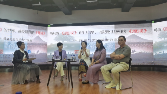 对话分享由《魔戒》责任编辑冯娅主持,译者路旦俊、辛红娟、阎勇及文化学者罗维与现场师生共话《魔戒》、同游魔界。他们深入探讨了《魔戒》汉译过程中的诗学重构,以及其中蕴含的中西哲学智慧。