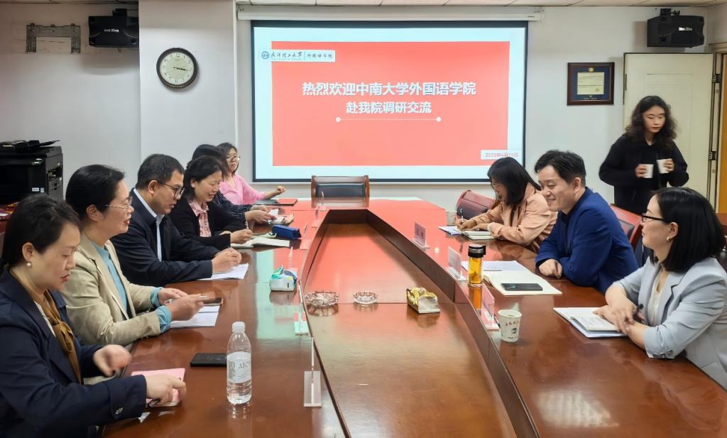 为深化本科专业改革,探索外语学科高质量发展新路径,4月10日至11日,学院副院长侯合余、副院长王华玲、英语系党支部书记陈洁、日语系主任邓牧、英语系副主任方哲英、西语系方丽君、英语系成刘祎一行赴武汉大学、华中师范大学、武汉理工大学开展专题调研,围绕人才培养、微专业建设、实习基地、师资建设及党建工作等主题,与三校外语学院进行了深入交流。