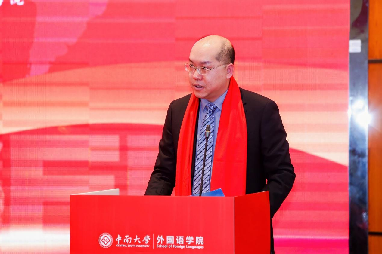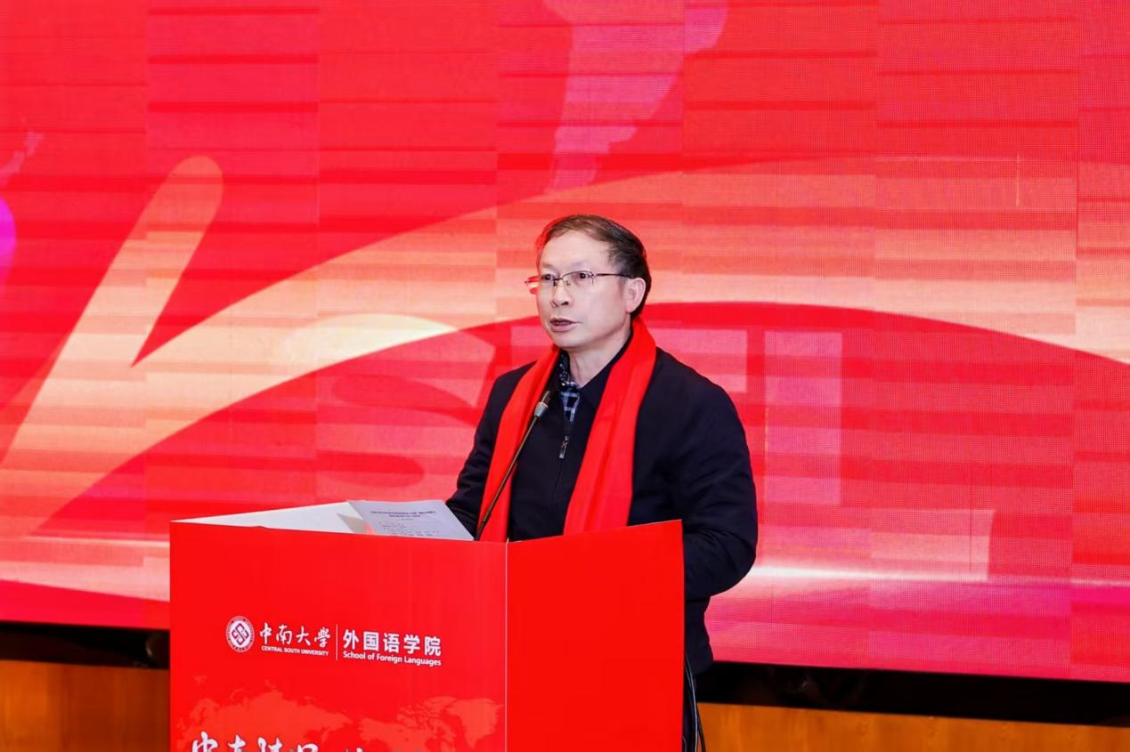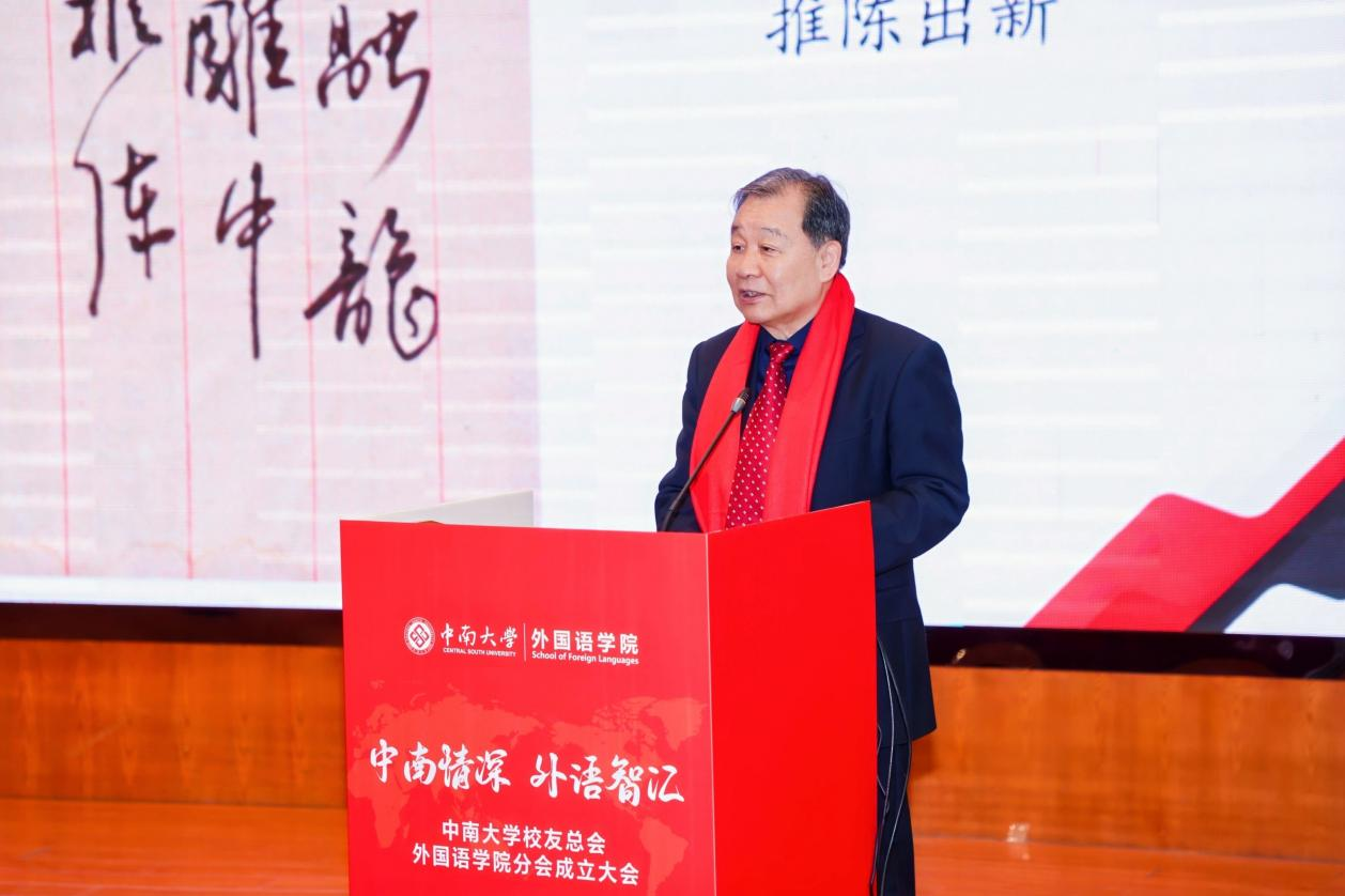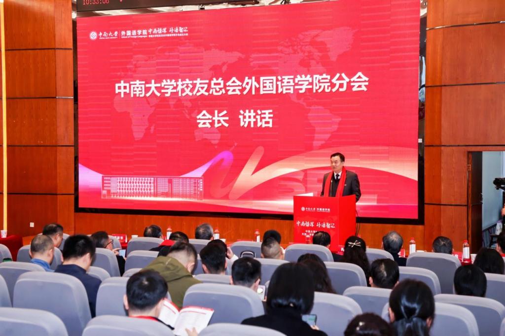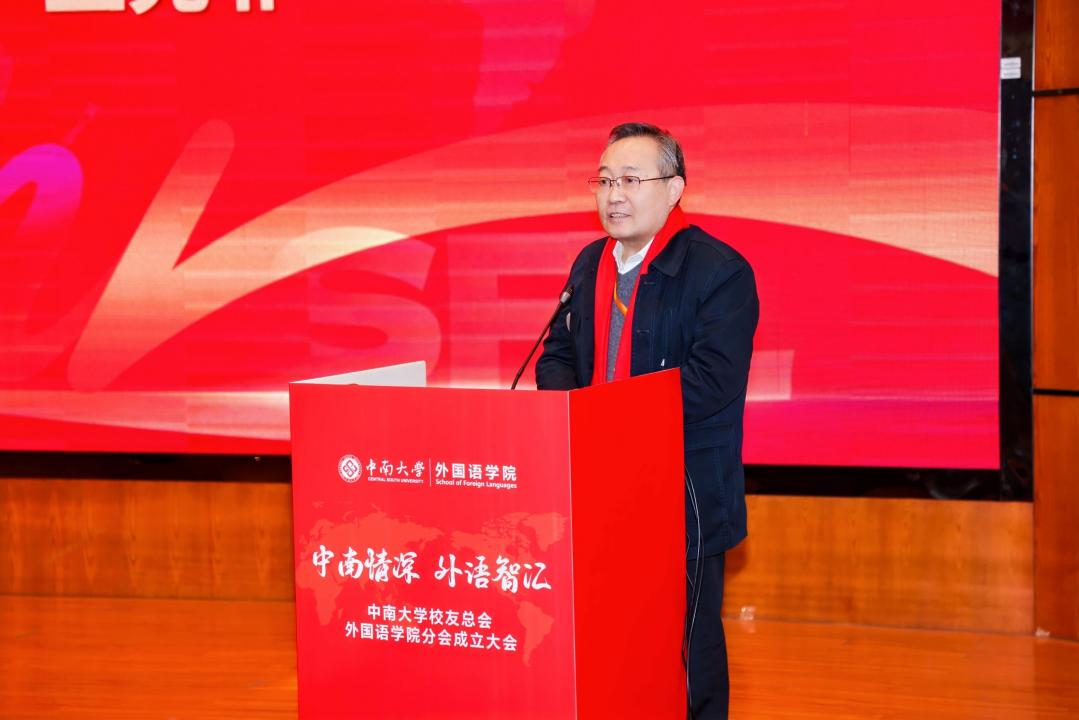 校党委副书记付刚华代表学校对分会的成立致以热烈祝贺,并重点介绍了学校近年来在学科建设、人才培养、国际合作及美丽校园建设等方面取得的标志性成就与长远发展规划。他强调,学校的发展离不开包括外语人在内的全体师生的贡献与广大校友的鼎力支持。他对分会提出明确期望:要建设成为凝聚校友、传承精神的情感纽带,搭建起相互促进、协同发展的重要平台,积极引导校友资源助力母校、服务社会,在人才培养、科研合作与社会服务等方面形成深度联动,携手推动学科发展迈向新高度。