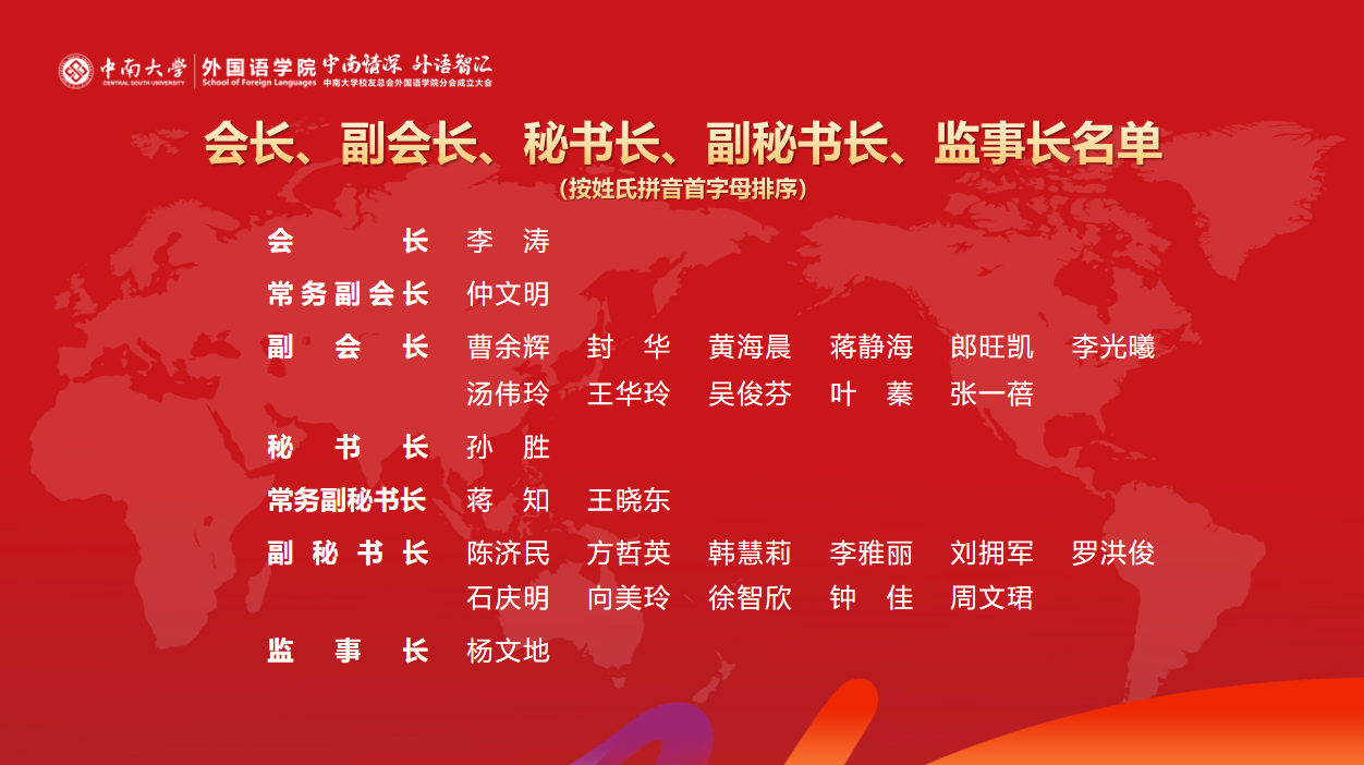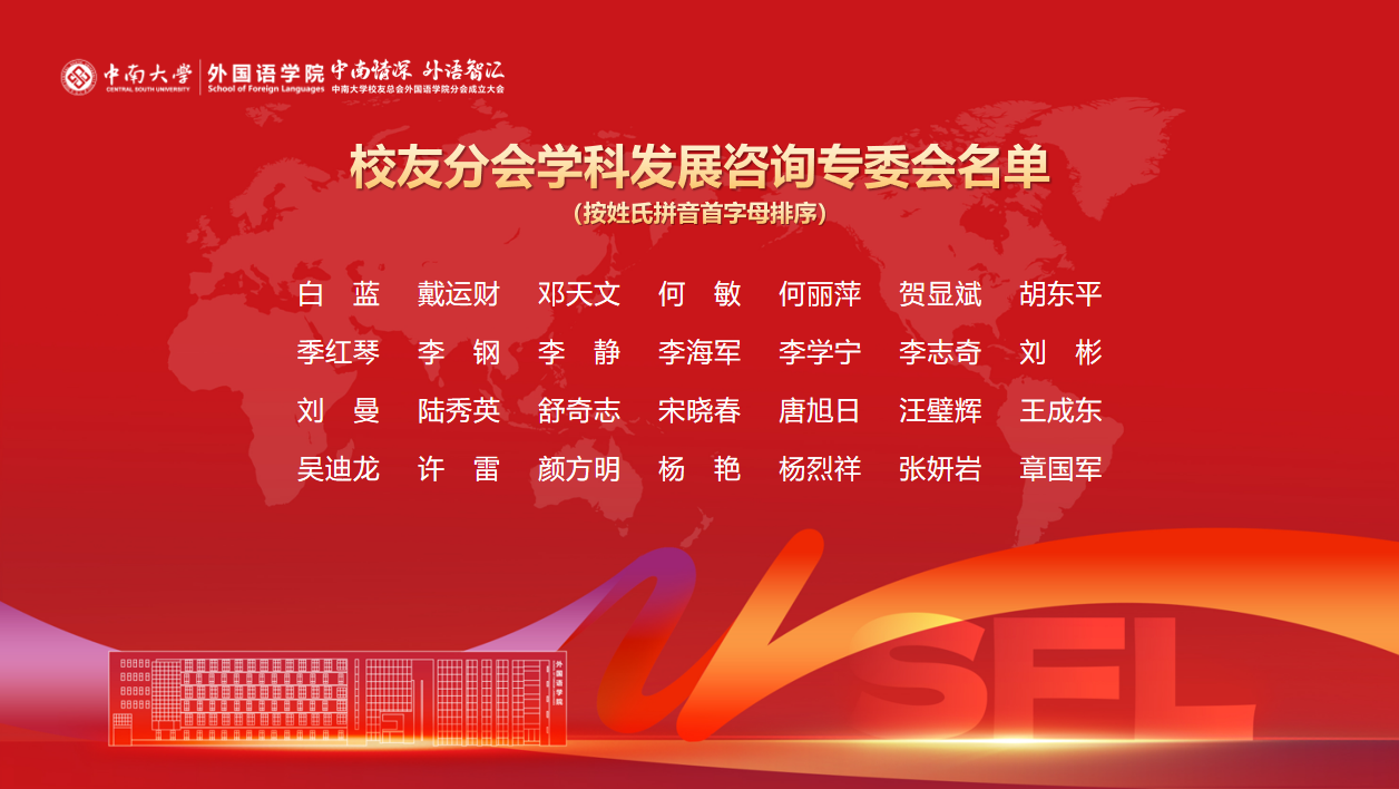 1月10日,yl23455永利集团校友总会yl23455永利集团分会成立大会在外语楼报告厅举办。原湖南省政协副主席、78届校友袁新华,yl23455永利集团党委副书记付刚华,中国英汉语比较研究会专家委员会主任、校友罗选民,《外语教学与研究》荣誉主编、第七届国务院学科评议组成员、86届校友王克非,湖南科技学院党委书记、01级校友李钢,yl23455永利集团教育发展与校友事务办公室主任余文武、副主任刘宪军,yl23455永利集团办公室副主任王明东出席大会。学院老领导代表、老教师代表、学院班子成员、在岗教师代表以及258名返校校友齐聚一堂,共叙情谊,共话发展、共襄盛举。yl23455永利集团党委副书记孙胜主持大会。