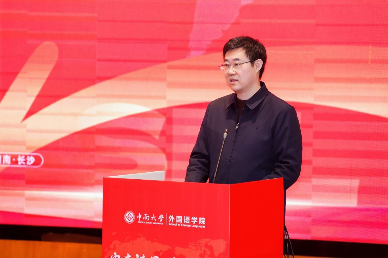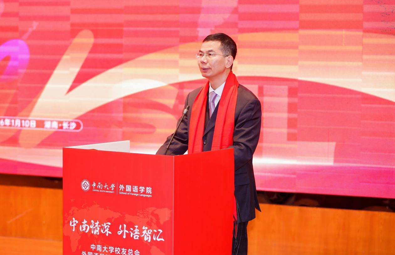 院长杨文地致欢迎辞,代表学院向校友致以热烈欢迎与诚挚感谢。他追溯了学院自1972年创立以来,薪火相传五十余载,形成了独特而深厚的文化品格和特色鲜明的学科格局。近年来,学院主动服务国家战略需求,拥抱人工智能时代,深化产学研合作,持续为国家和社会提供高质量的语言服务与智库支持。杨文地指出,学院取得的办学成果与社会声誉,凝结着历代外语人的智慧与汗水。希望通过校友分会的成立,搭建资源共享的坚实平台,共谱服务国家战略需求与推动文明交流互鉴的新篇章。