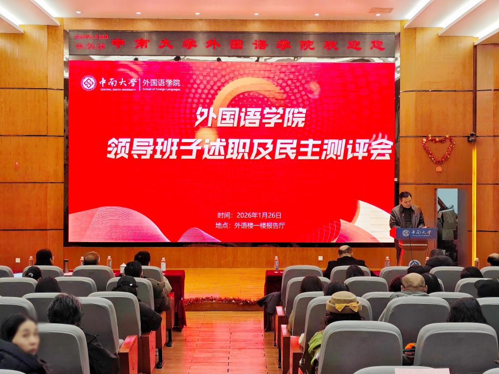 会议第一项,进行学院领导班子和领导干部年度考核。学院党委书记李涛代表学院党政领导班子作2025年度领导班子述职报告,从学院党建、宣传和意识形态、思想政治工作、本科专业教学、大学外语教学、研究生培养、学科建设和科研工作、国际合作交流、群团工作、统战工作、离退休职工服务等11个方面进行述职。报告对2025年学院领导班子团结协作、全体师生团结奋斗取得的优异成绩进行总结之后,也指出学院领导班子目前存在不足和问题,并从推动理论学习进一步走深走实、提高党委班子办学治院能力和水平、加大队伍人才引进和培育力度、建设充满生机的永利集团环境等方面就学院2026年的工作思路作了报告。最后,他期望并号召全院教职员工以更务实的作风、更昂扬的斗志,携手并肩、砥砺前行,共同推动学院各项事业行稳致远,奋力书写yl23455永利集团高质量发展的崭新答卷!