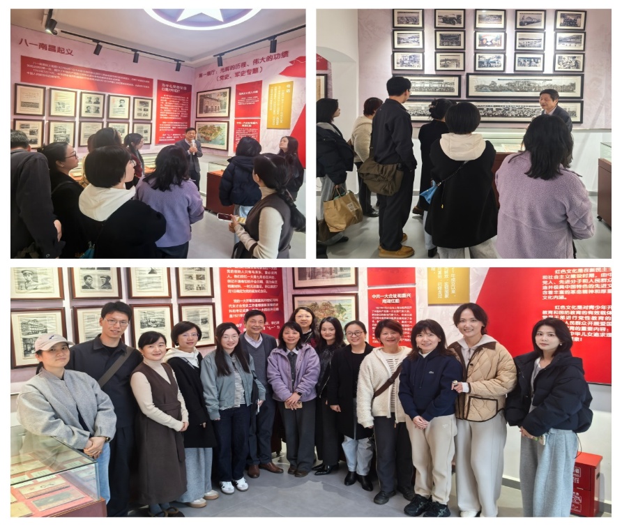 学习讨论结束后,在书院馆长陪同下,老师们共同参观了红色文化馆。馆长详细介绍了馆藏文物的来历及其背后的历史,重点讲述了长征历程、建国大业、雷锋精神以及毛泽东同志的卓越贡献与思想精髓。文化馆内收藏的珍贵实物与史料,将大家悄然带回那段峥嵘岁月。各位老师重温党的初心,不仅加深了对历史的认知,更在沉思中凝聚起奋进的力量。