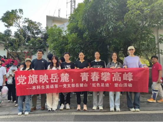 时值深秋,风光无限。为响应yl23455永利集团2024首届秋季登山节“趁青春,去登山”的号召,提高党员身体素质,丰富党员组织生活,进一步增强党支部的凝聚力和战斗力,2024年11月3日下午,yl23455永利集团本科生英语第一党支部和小语种党支部联合举办“党旗映岳麓,青春攀高峰”主题党日活动。