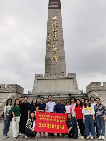 为了加强党员基本修养,提高党员理论认知深度,强化党纪教育效果,增强基层党组织的凝聚力,6月1日,大外三、四教研室党支部联合英语系党支部,组织党员们前往江西萍乡参观了安源路矿工人运动纪念馆、秋收起义纪念碑等革命旧址。