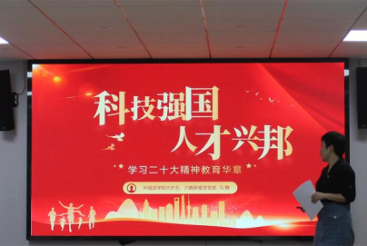 学生党员则从如何当好中南外语人及讲好中国故事展开论述。本科生小语种党支部的蒋馨逸同学以红色翻译家郭大力先生为例,强调作为新时代中南外语人要坚定文化自信,以踔厉奋发的精神,勇于担当,讲好中国故事。研究生第三党支部的施晨旭同学紧扣自我革命精神,从自我净化、自我完善、自我革新、自我提高四个方面展开论述,情感真切,理解深刻。