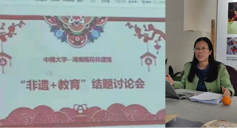 段慧如教授阐述中南学子设计非遗双语课程、开展非遗课题研究和非遗创新创业的经历,肯定了非遗教育的研究成果。