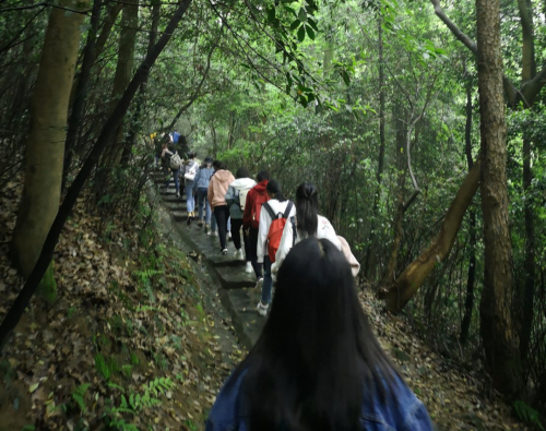 雨后的山路湿滑,在行进期间,同学们相互搀扶,在湿滑的石板路上慢慢前行,即使感到疲劳也从不言弃。“我们所面临的困难相比烈士们所遭遇的是九牛一毛!”,有同学说道。到达山脚后,同学们均安全汇合,本次团日分支活动圆满结束。