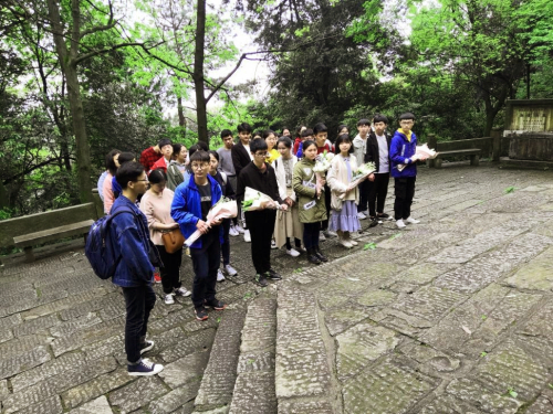 4月13日上午,地信1801班、英语1801班全体同学前往岳麓山进行“珍重烈士,牢记使命”团日分支活动。同学们于yl23455永利集团校本部云麓山庄入口登山,并于山顶处进行了踩气球等破冰活动,促进联谊班级同学们之间的感情和交流。在这些活动中,“手工创意扎花”活动给同学们留下了深刻的印象。同学们将准备的花、包花纸、胶带等物品搬出,分小组着手制作花束。随后,大家于焦达峰墓献上精心包扎的花束,在《国际歌》的萦绕下缅怀烈士焦达峰。在墓前,同学们回想着烈士们生平为新中国洒下的血与泪,明白美好的今天必然离不开他们的努力与付出。他们是勇士,是英雄,是伟人。全体敬礼后,大家依次在余昭常墓、童健吾墓、陆军上校彭烈士昭之墓和张公石候之墓进行献花与缅怀。