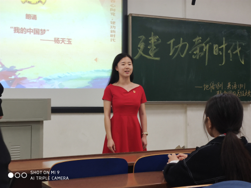 随后,英语1801班杨天玉同学给大家带来了慷慨激昂的朗诵节目——“我的中国梦”。朗诵过后,许多同学感慨道:“中国梦将永存于每一个中国人的心中,新中国在共产党的领导下必将会更加繁荣与昌盛!”