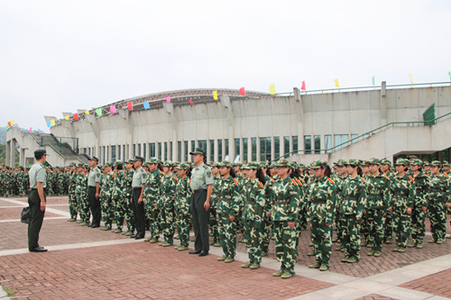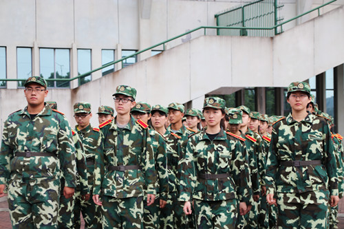外院最大的特点便是女生多,尽管赤日当空,但巾帼不让须眉,外院的学子们热情不减,精神抖擞地参与到了各个项目训练当中。在军训中,高温酷暑给军训工作带来困难,有的学生病倒了,凭借着顽强的意志,稍有好转便坚持训练;有的学生带病仍在坚持训练。在部队教官亲切的关怀和严格训练下,在短短的几天里,齐步走、正步走、齐步变正步、解散、集合及分列式等预定训练科目已初见成效。教官手把手教,学生认真的学,在军训队列考核中,方队整齐,精神饱满,步伐矫健、口令准确、声音嘹亮,走出了外院的风采。