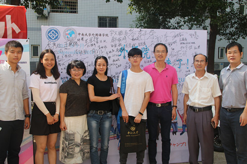 9月8日,迎新第二天,yl23455永利集团陈广程书记,李洁院长,许林勇副书记及各级辅导员们来到了现场指导迎新工作,期间不仅嘱咐了前来报到的新生一些入学注意事项,解答了家长的有关疑惑,还与同学及其家长在签名版前合影留念,进一步加强了与大家的感情交流。