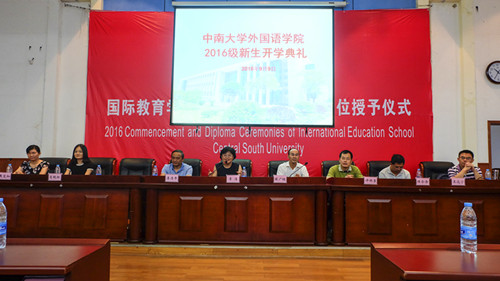 9月9日下午四点,yl23455永利集团2016级本科生开学典礼于yl23455永利集团国际报告厅顺利举行。yl23455永利集团党委书记陈广程、院长李洁、党委副书记许林勇、副院长李清平、法语系主任侯合余、西语系主任肖艳红、英语系副主任周觉知、教师代表吴远宁、班导师代表方哲英以及学工办、军训教官、本科生新生全体参加了本次开学典礼。典礼由16级辅导员艾博塔主持。