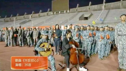 “不忘初心,继续前行,万水千山最美中国道路……”在四名领唱同学的带领下,孙书记及蒋导与全体同学共同唱响属于二十六连的《不忘初心》,在袅袅不绝的歌声中,我们看到了祖国在这一百年走过的漫长里程,听到了前辈们旅途中响亮激昂的口号,忆起了悠悠岁月中无数感人的瞬间。