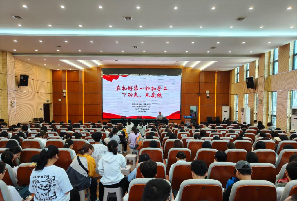 2024 年 9 月 24 日中午12点30分,yl23455永利集团党委副书记孙胜在学院报告厅以“在扣好第一粒扣子上下功夫、见实效”为主题,从“坚定理想信念、严守纪律规矩、勇于担当奋斗”三个方面,围绕学生在校期间的纪律要求、行为规范以及奋斗目标等方面给学院全体2024级新生进行讲座。本场讲座旨在引导新生树立正确的价值观,严守纪律,努力拼搏,为实现人生目标而奋斗。