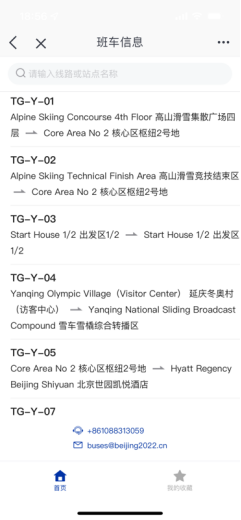 冬奥通班车信息:从左至右北京区域、延期区域与张家口区域