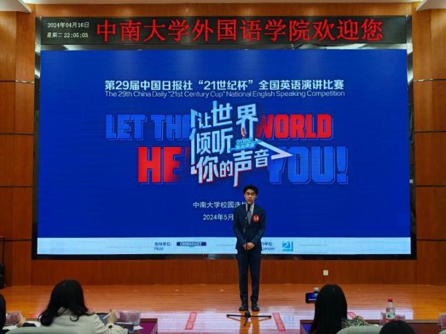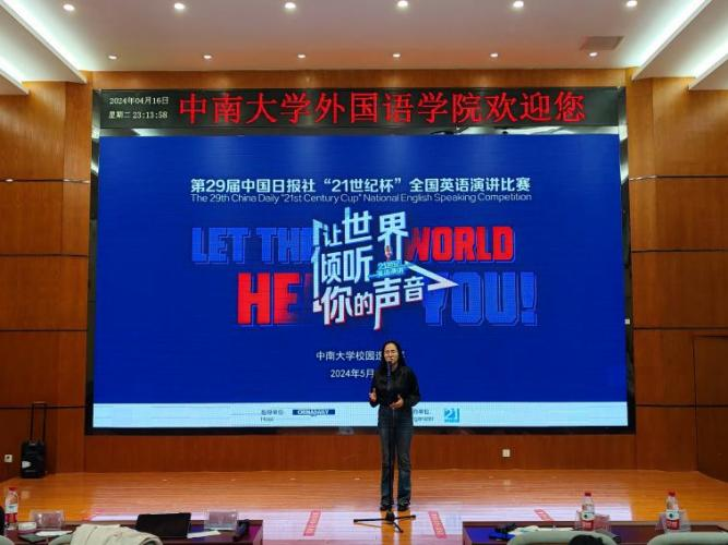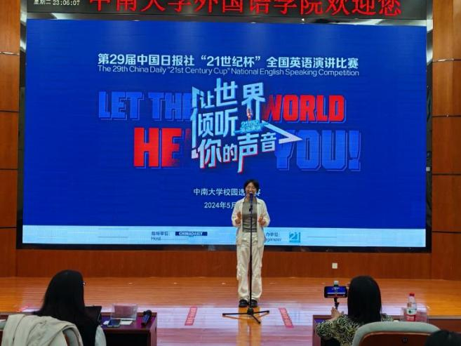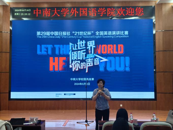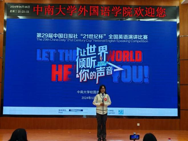 202458日下午,第29届中国日报社21世纪杯全国英语演讲比赛yl23455永利集团选拔赛于yl23455永利集团报告厅举行。比赛特邀张春敏教授、周觉知副教授、傅春晖副教授、许燕副教授和黄启瑜老师担任评委,往届获奖选手口译22级研究生殷玥担任提问评委,往届获奖选手口译22级研究生刘原君和英语20级本科生秦宇凯担任主持。