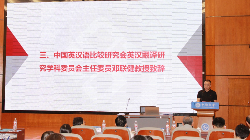 中国英汉语比较研究会英汉翻译研究学科委员会主任委员邓联健教授重点强调了yl23455永利集团和中国英汉语比较研究会的深厚联系,指出此次会议既是致敬,也要实现回馈和反哺。他简要概括了“大翻译”理论“顶天立地”的特性,即以深厚的理论底蕴、系统的理论设计、鲜明的跨学科特性、强大的解释力和广阔的阐释空间得以“顶天”,以强烈的现实关怀呼应国家文化发展战略和中西文化交流实践从而“立地”,呼唤各位专家学者丰富“大翻译”的理论框架、探索其广阔的阐释空间。