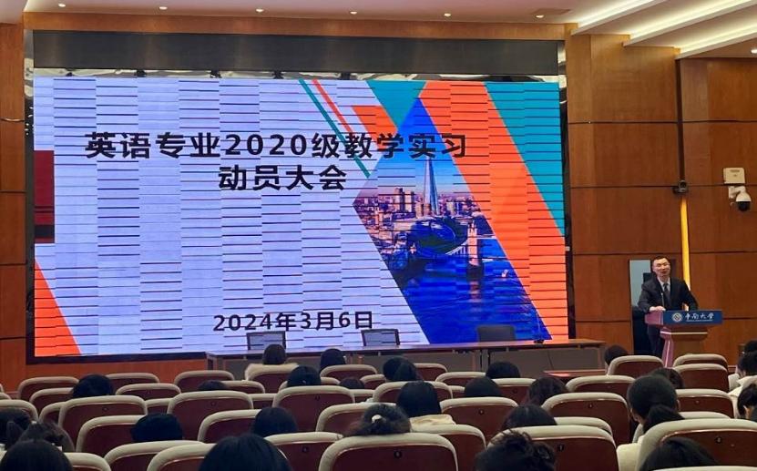 A pre-internship orientation was held on the afternoon of March 6 in the lecture hall on the first floor of the school building. Associate Dean Yan Hongfu emphasized the importance of the internship for professional development. The Department of English formulated detailed internship regulations and portfolio guidelines. Department Head Yan Yong and Associate Head Tian Sha provided detailed instructions on internship tasks, discipline, and safety protocols.