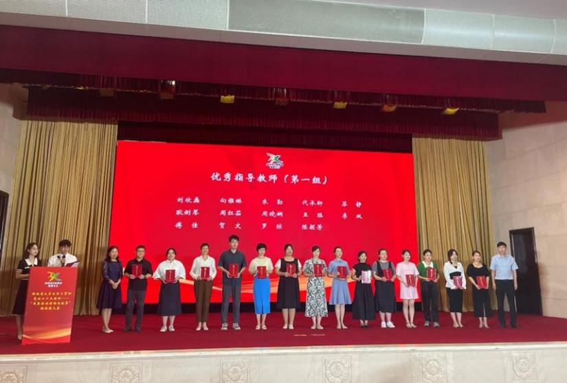 Wang Hualing, Associate Dean of our school; Wang Wenyan from the Ideological and Political Education Office; Li Lijun, Director of the Foreign Language Center for Non-Majors; Fang Zheying, Deputy Director of the Department of English; and Geng Liqin from the Department of English attended the closing ceremony. Lu Yu, a 2021 undergraduate student, presented on behalf of the team and was interviewed by Hunan Education TV. The ceremony was covered by multiple media outlets, including Rednet and the official video channel of the Department of Education of Hunan Province.