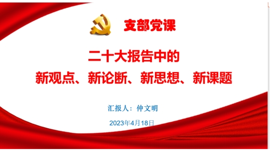中国共产党二十大报告提出了全新的思想、理念和论断,推出了一系列新战略、新举措。深刻领悟二十大报告精神,是每一个党员提高政治理论水平和工作实践能力的必修课。为此,英语系党支部延续“人人上党课”的传统,4月19日下午,英语系党支部同志齐聚外语楼427教室,开展主题党日活动,邀请学院党委委员、副院长仲文明以“二十大报告中的新观点、新论断、新思想、新课题”为主题,为支部教师党员上了一堂生动的党课。仲文明同志...
