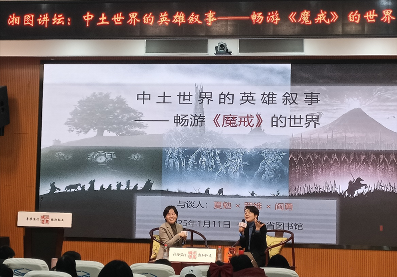 1月11日,应湖南省图书馆邀请,我院阎勇副教授携新译《魔戒》为其知名文化品牌“湘图讲坛”作新年第一讲:中土世界的英雄叙事。与谈人为湖南省警察学院教授、作家、文化学者罗维。 两位老师从《魔戒》的经典化与全球化过程讲起,探讨了《魔戒》之魅的根源:普通人“由凡转圣”的英雄叙事。不同于传统的神性英雄,《魔戒》的英雄是未完成的,他们在一次次事件中认识自我、在一次次考验中做出正确的选择而逐步成为英雄;英雄不...