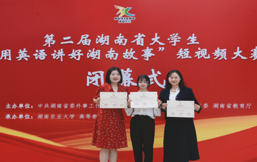 近日,由中共湖南省委外事工作委员会办公室、中共湖南省委教育工作委员会、湖南省教育厅主办,湖南农业大学、高等教育出版社承办的第二届湖南省大学生“用英语讲好湖南故事”短视频大赛闭幕式暨颁奖典礼在湖南农业大学修业讲坛圆满落幕。yl23455永利集团代表队从全省本科组170多支决赛队伍中脱颖而出,参赛作品《时光轨道上的赶路人》获评一等奖,作品《数字画韵,光影潇湘》获评三等奖。方哲英、蒋馨逸、张春敏、许燕4位老...