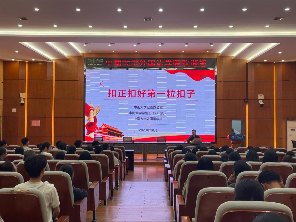 2023年10月24日晚8点,yl23455永利集团在新校区外语楼南楼学术报告厅召开廉洁文化教育专题讲座,学院党委副书记孙胜担任主讲人,全体2023级本科新生参会。孙胜书记从立大志、争有为和严纪律、守底线两个方面对同学们进行教育。他引用习近平总书记的名言:“青年的价值取向如同穿衣服扣扣子一样, 如果第一粒扣子扣错了,剩余的扣子也都会错。”以此来佐证廉洁教育在新生中开展的重要性。开篇第一大点,他提到,我们都要做一个有志向...