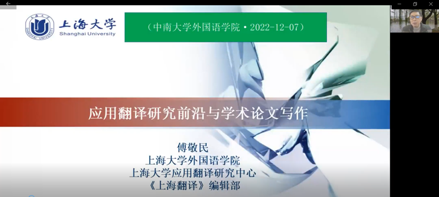 傅敬民教授带来“应用翻译研究前沿与学术论文写作”学术讲座